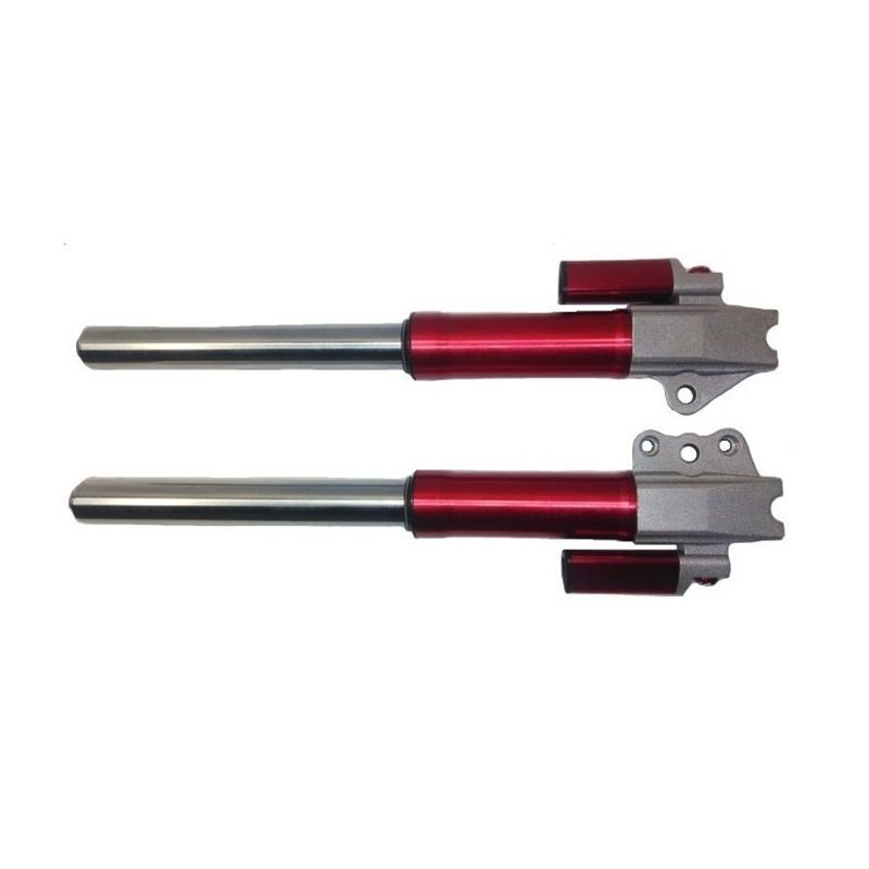 Recambio de suspensión patinete electrico hidráulica delantera de color plateado y rojo para el patinete eléctrico Centauro.